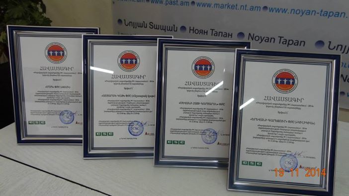 19.11.2014 «Նոյյան Տապան» լրատվական կենտրոնի մամուլի սրահում տեղի է ունեցել «Ժողովրդական ապրանքանիշ №1 Հայաստանում - 2014» մրցանակաբաշխության ամփոփիչ մամուլի ասուլիսը։ Հայտարարվեցին 10 անվանակարգերի «Ժողովրդական ապրանքանիշ N1 Հայաստանում– 2014» կոչմանը արժանացած ապրանքանիշերը, որոնց ներկայացուցիչներին հանձնվեցին հավաստագրեր :